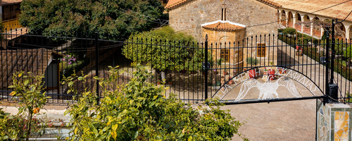 The Monastery of Skafidia is located on a slope near the sea, next to the river Iardanos, at the mouth of which are foun...