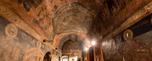 The Monastery of Skafidia is located on a slope near the sea, next to the river Iardanos, at the mouth of which are foun...