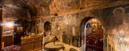 The Monastery of Skafidia is located on a slope near the sea, next to the river Iardanos, at the mouth of which are foun...