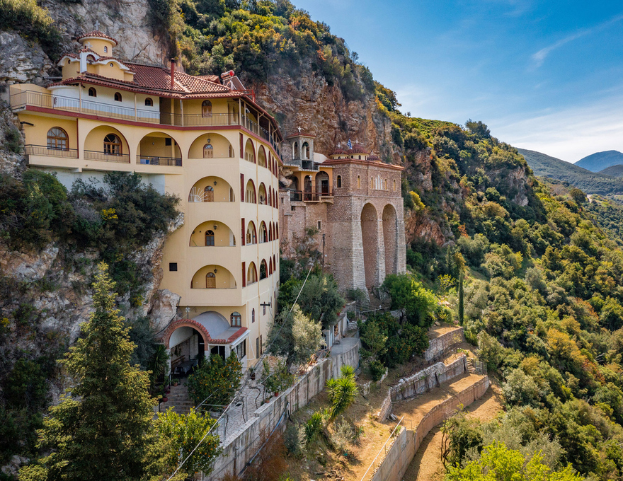 The imposing monastery of Panagia of Sepetos is “hanging” on the rocks of mountainous Ilia. Although less well-known, it is one of the most impressive monasteries in Greece and is only a few kilometers away from the historic Andritsena.
