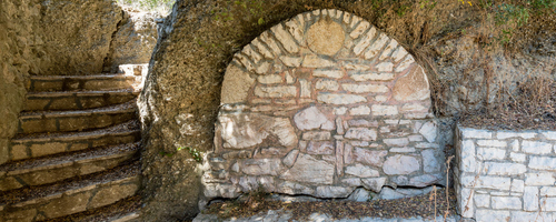 The cave of Panagia Varko, is hidden in an overgrown, wild vegetation area, on a rock, next to a magnificent waterfall a...